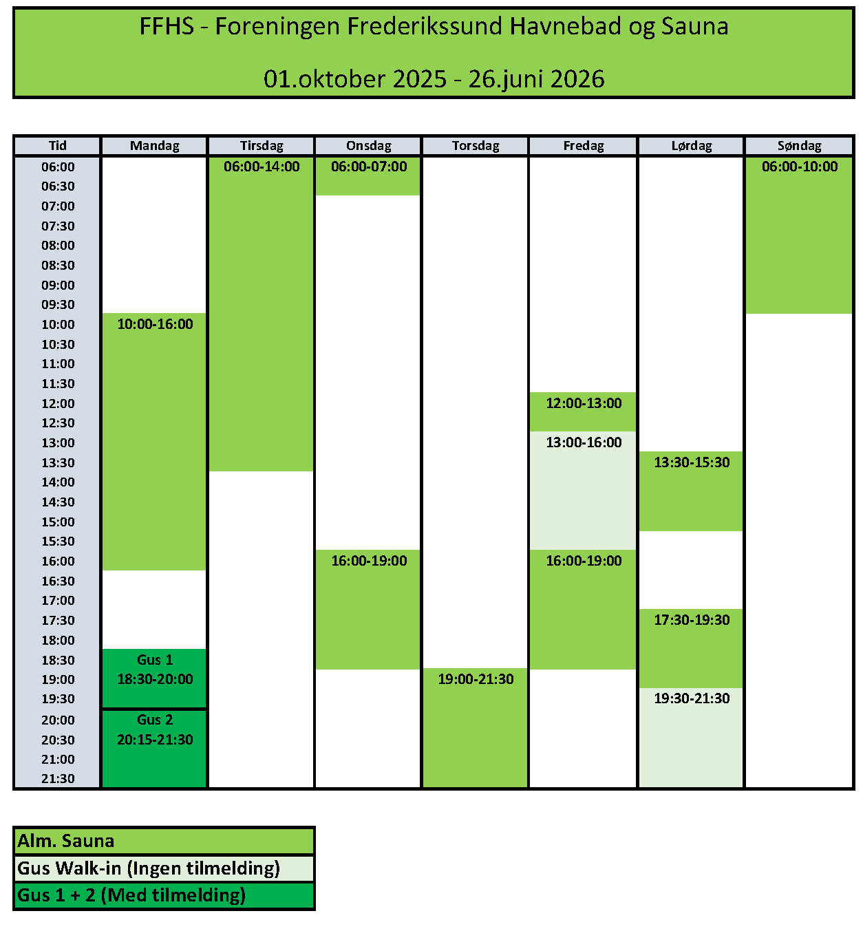 - Der er kun adgang i omklædning og sauna for FFHS´s medlemmer i de tider der er tildelt foreningen.